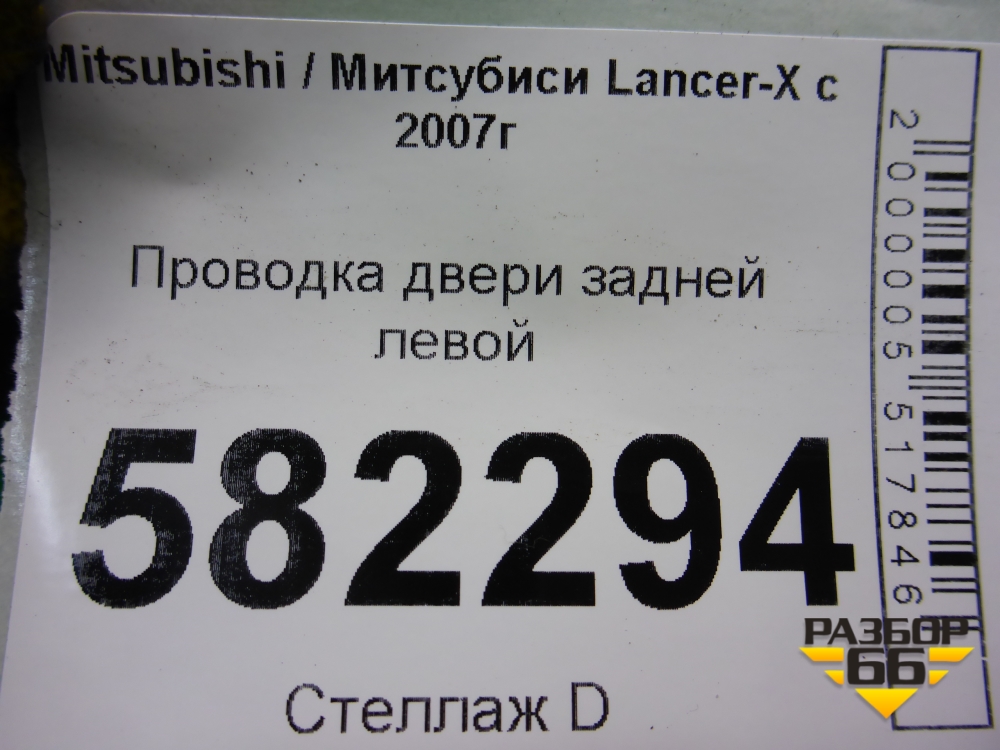 Проводка двери задней левой (8512A552) для Mitsubishi Lancer-X с 2007г (Лансер) в Тюмени