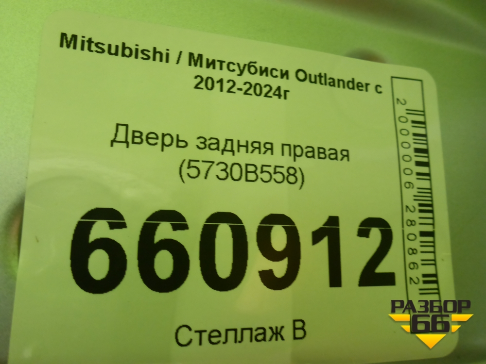 Дверь задняя правая (5730B558) для Mitsubishi Outlander с 2012-2024г (Аутлендер) в Тюмени