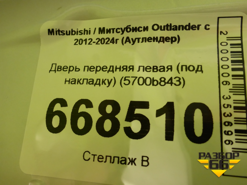 Дверь передняя левая (под накладку) (5700b843) для Mitsubishi Outlander с 2012-2024г (Аутлендер) в Тюмени