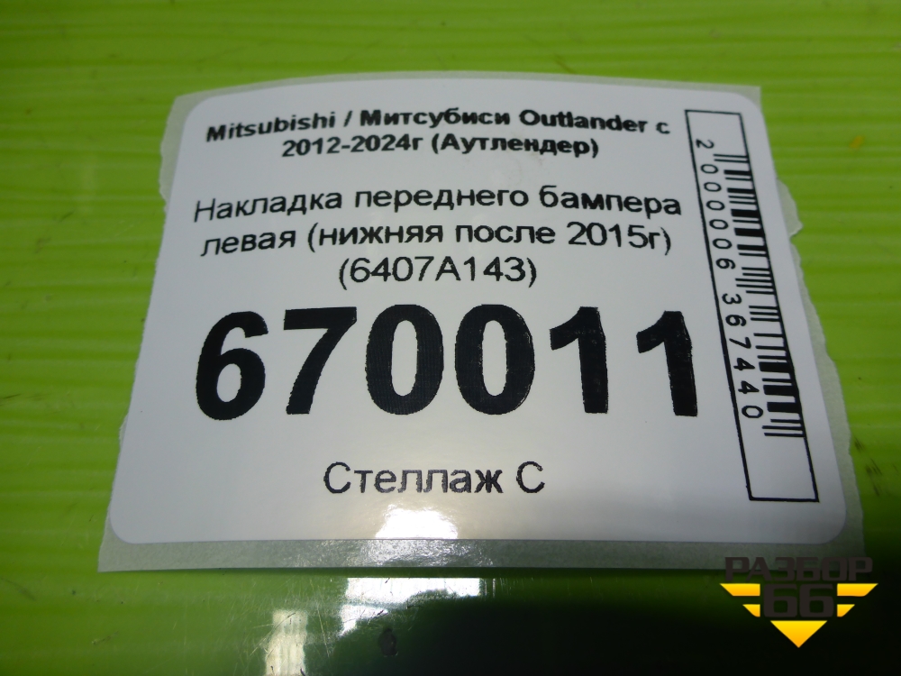 Накладка переднего бампера левая (нижняя после 2015г) (6407A143) для Mitsubishi Outlander с 2012-2024г (Аутлендер) в Тюмени