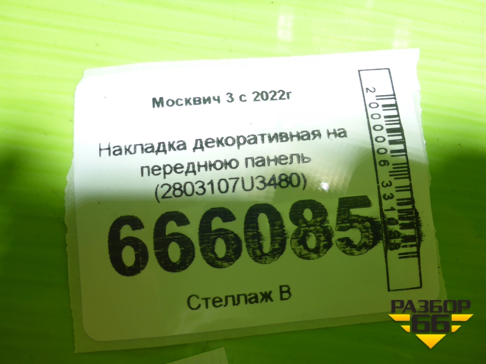 Накладка декоративная на переднюю панель (2803107U3480) для Москвич 3 с 2022г в Тюмени