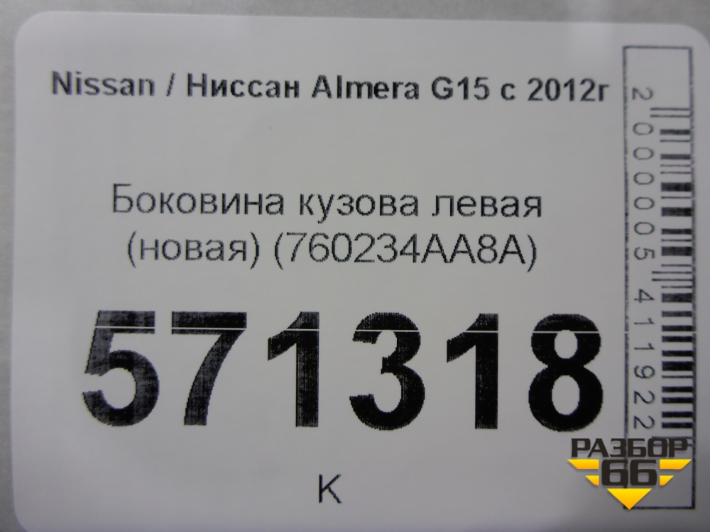 Боковина кузова левая (новая) (760234AA8A) для Nissan Almera G15 с 2012г (Альмера Г15) в Тюмени