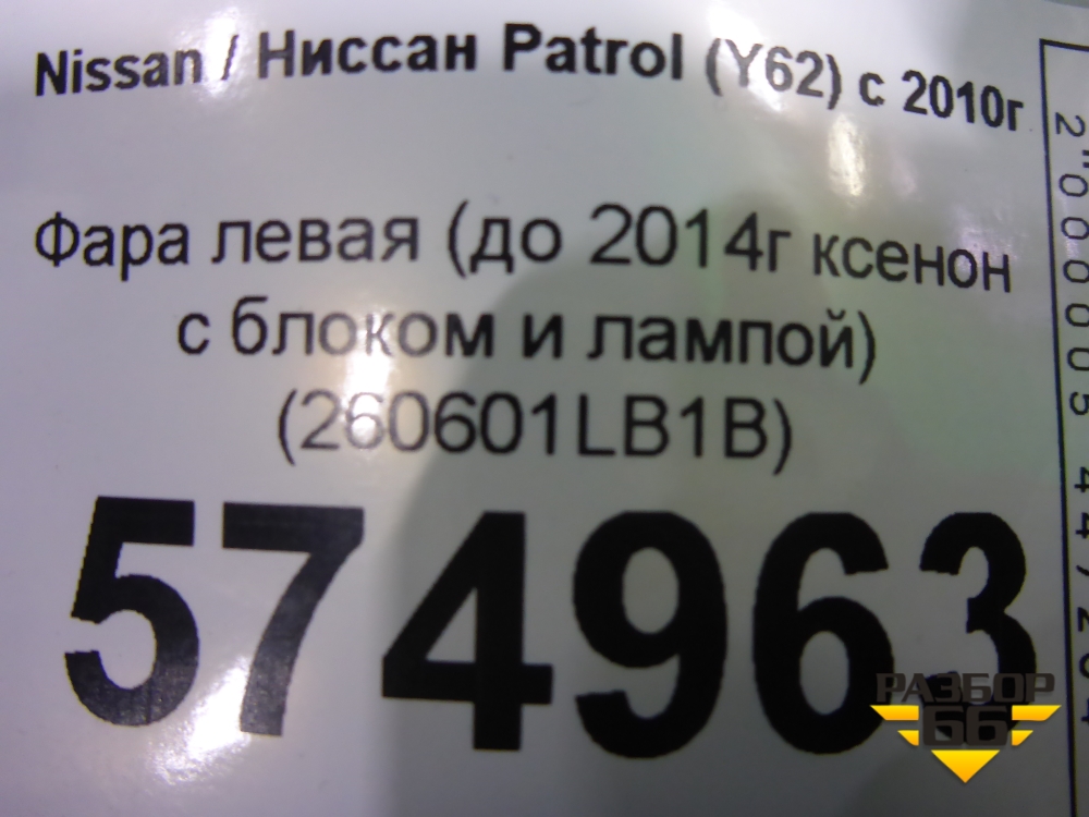 Фара левая (до 2014г ксенон с блоком и лампой) (260601LB1B) для Nissan Patrol (Y62) с 2010г (Патрол) в Тюмени