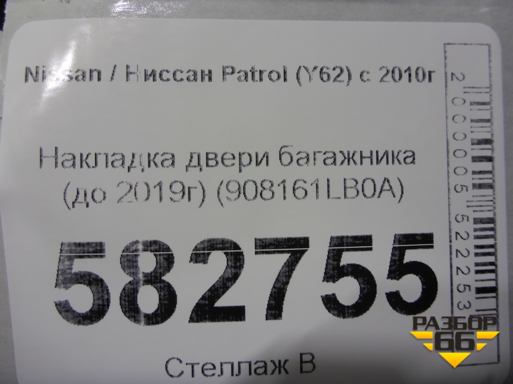 Накладка двери багажника (до 2019г) (908161LB0A) для Nissan Patrol (Y62) с 2010г (Патрол) в Тюмени