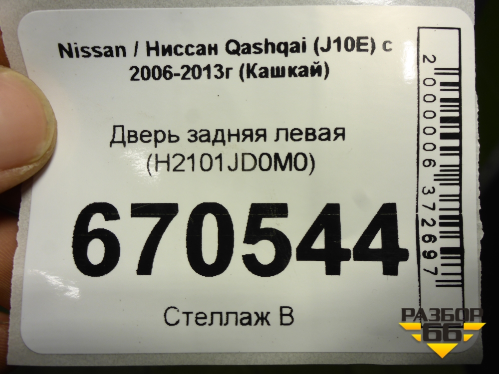 Дверь задняя левая (H2101JD0M0) для Nissan Qashqai (J10E) с 2006-2013г (Кашкай) в Тюмени