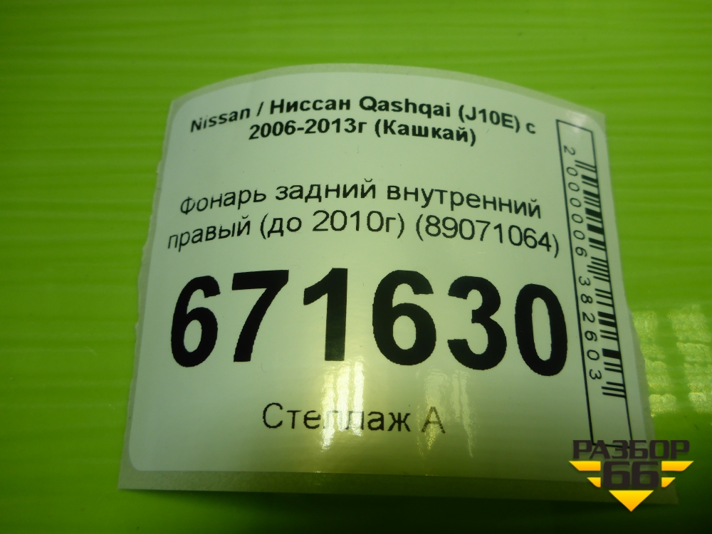 Фонарь задний внутренний правый (до 2010г) (89071064) для Nissan Qashqai (J10E) с 2006-2013г (Кашкай) в Тюмени