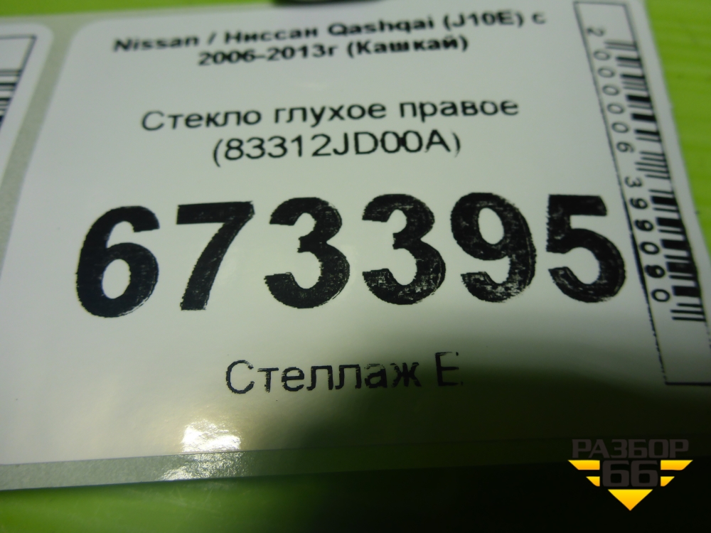 Стекло глухое правое (83312JD00A) для Nissan Qashqai (J10E) с 2006-2013г (Кашкай) в Тюмени