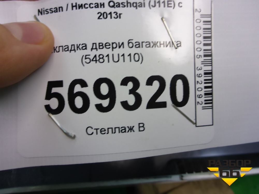 Накладка двери багажника (5481U110) для Nissan Qashqai (J11E) с 2013г (Кашкай) в Тюмени