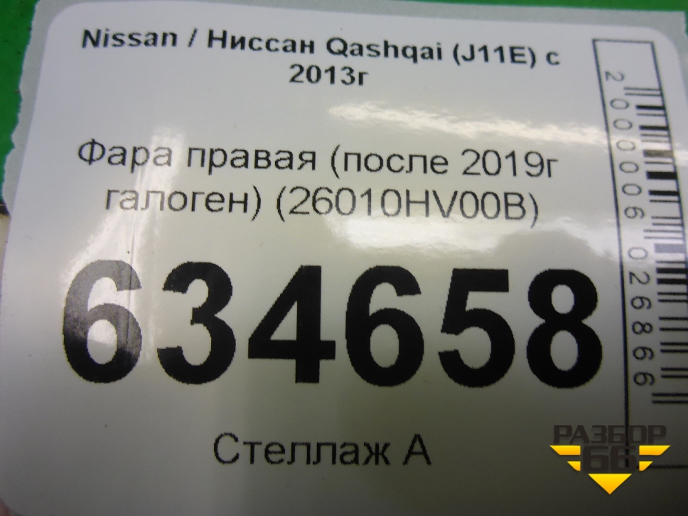 Фара правая (после 2019г галоген) (26010HV00B) для Nissan Qashqai (J11E) с 2013г (Кашкай) в Тюмени