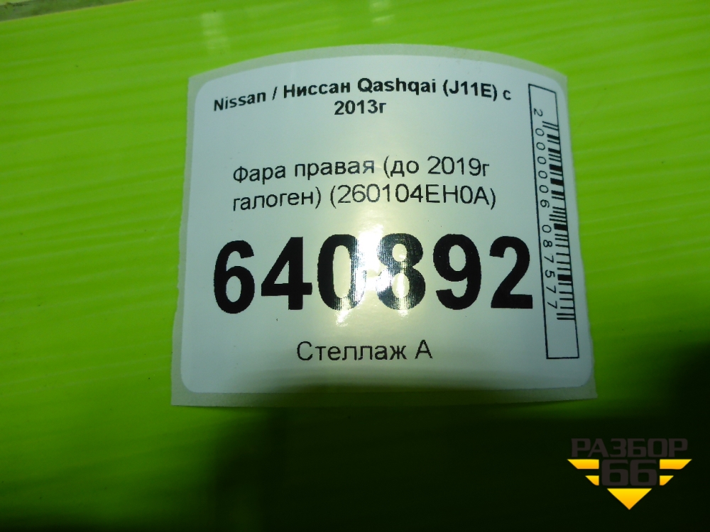 Фара правая (до 2019г галоген) (260104EH0A) для Nissan Qashqai (J11E) с 2013г (Кашкай) в Тюмени