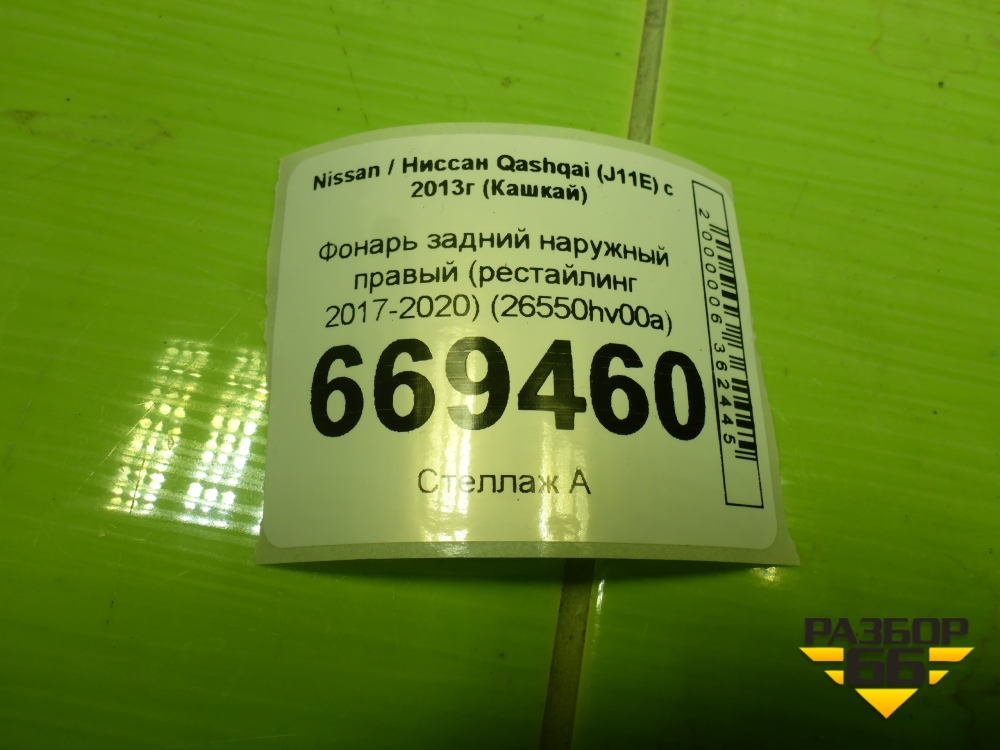 Фонарь задний наружный правый (после 2017г) (26550HV00A) для Nissan Qashqai (J11E) с 2013г (Кашкай) в Тюмени
