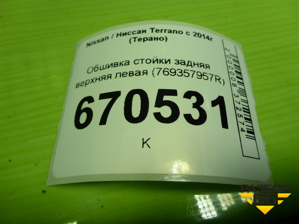 Обшивка стойки задняя верхняя левая (769357957R) для Nissan Terrano с 2014г (Терано) в Тюмени