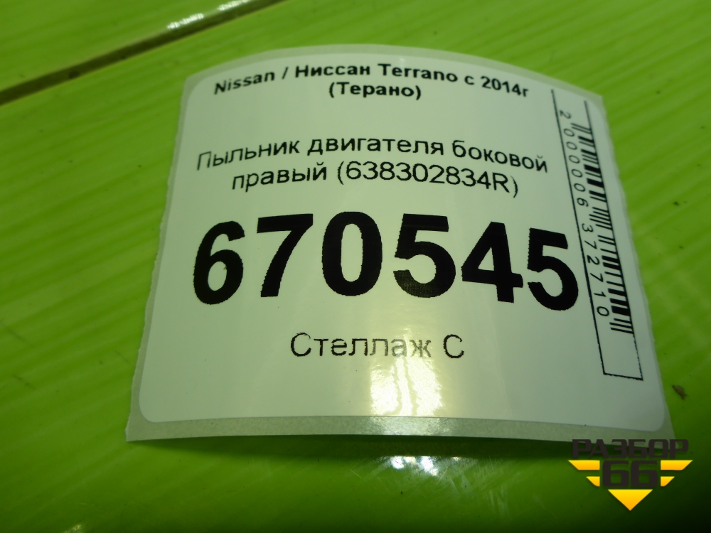 Пыльник двигателя боковой правый (638302834R) для Nissan Terrano с 2014г (Терано) в Тюмени