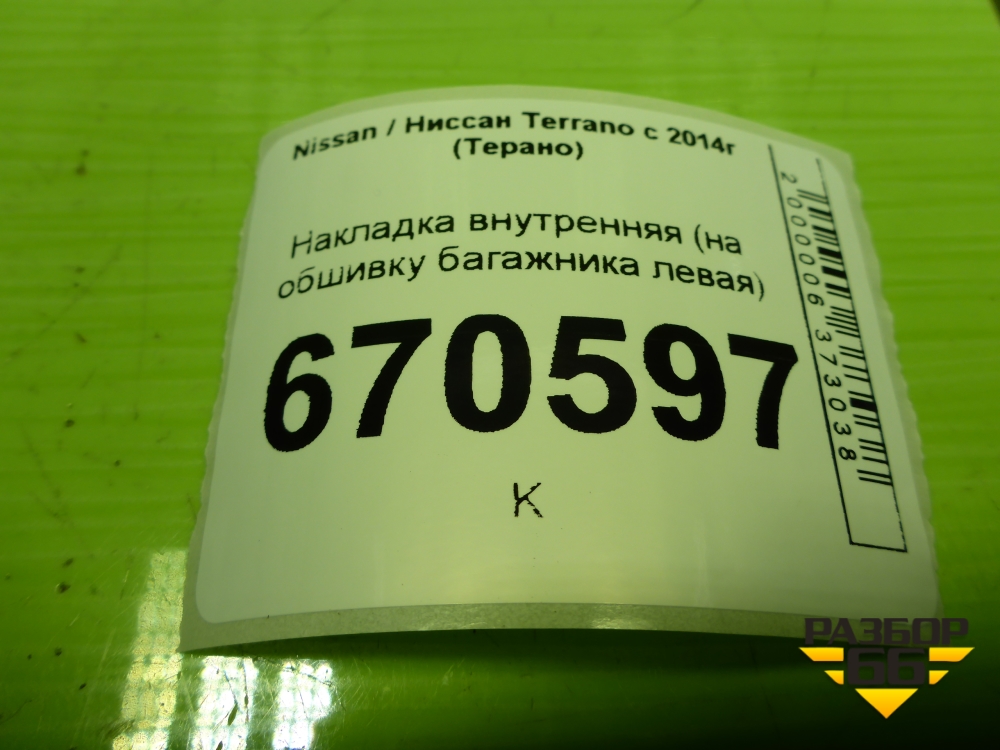 Накладка внутренняя (на обшивку багажника левая) (94401566) для Nissan Terrano с 2014г (Терано) в Тюмени