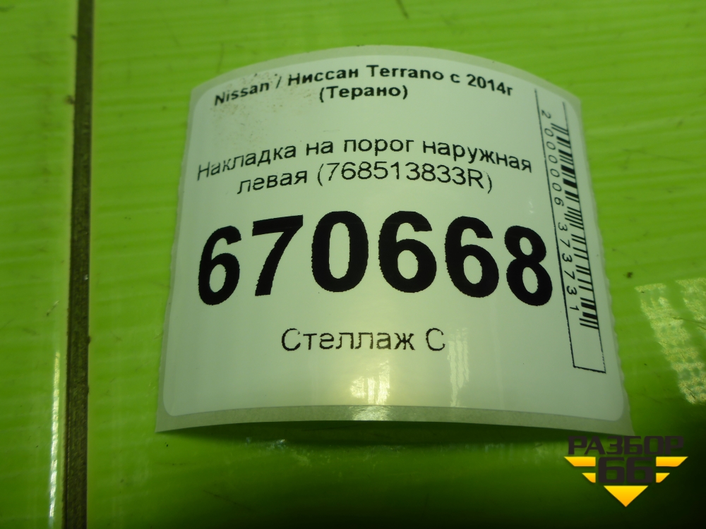 Накладка на порог наружная левая (768513833R) для Nissan Terrano с 2014г (Терано) в Тюмени