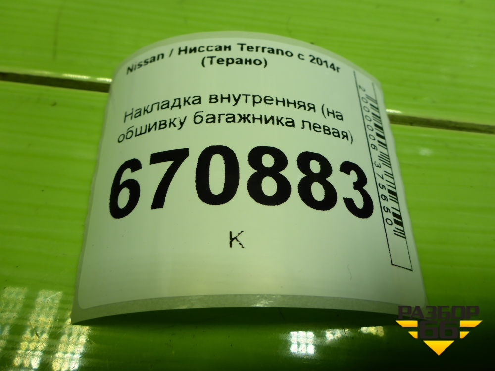 Накладка внутренняя (на обшивку багажника левая) (849519325R) для Nissan Terrano с 2014г (Терано) в Тюмени