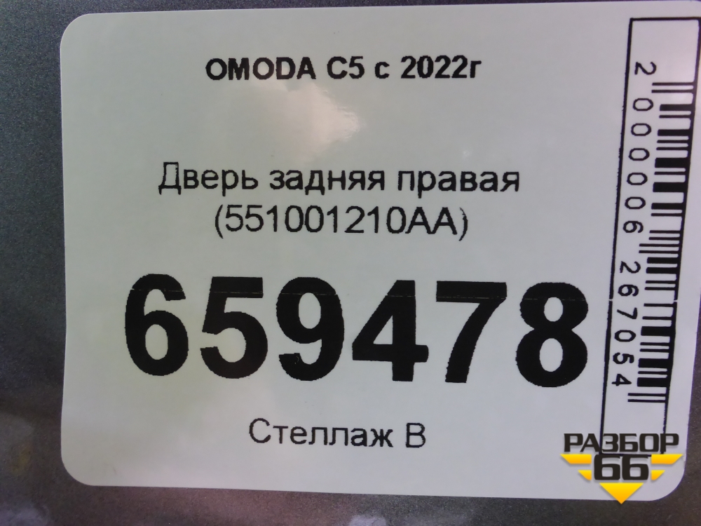 Дверь задняя правая (551001210AA) для OMODA C5 с 2022г (Ц5) в Тюмени