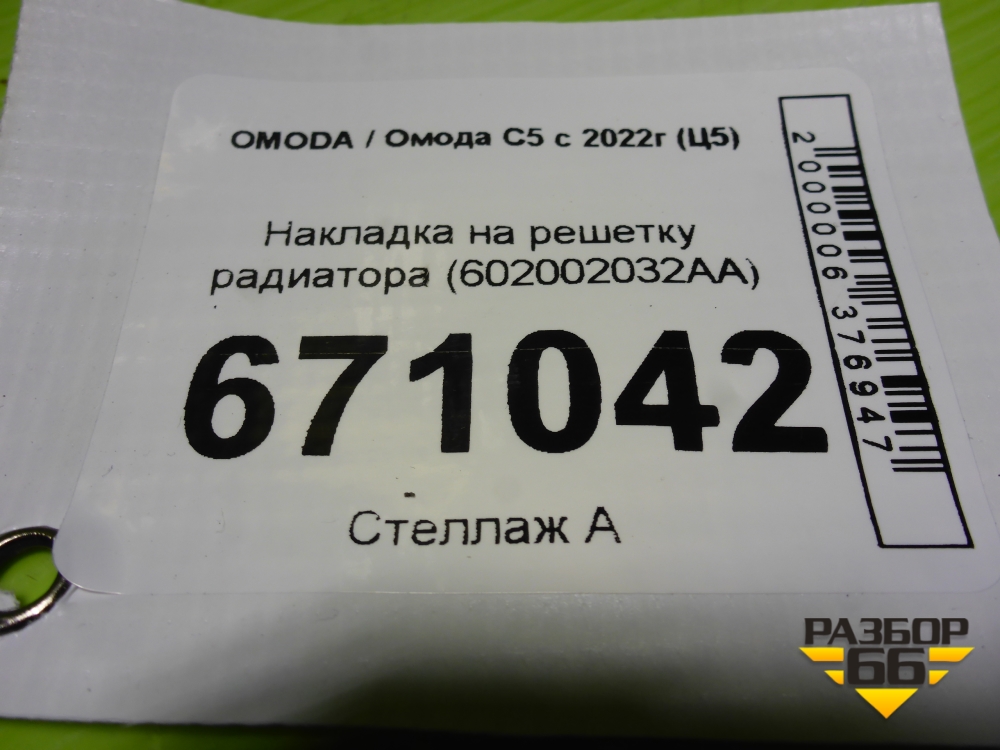 Накладка на решетку радиатора (602002032AA) для OMODA C5 с 2022г (Ц5) в Тюмени