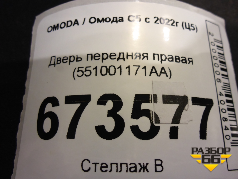 Дверь передняя правая (551001171AA) для OMODA C5 с 2022г (Ц5) в Тюмени