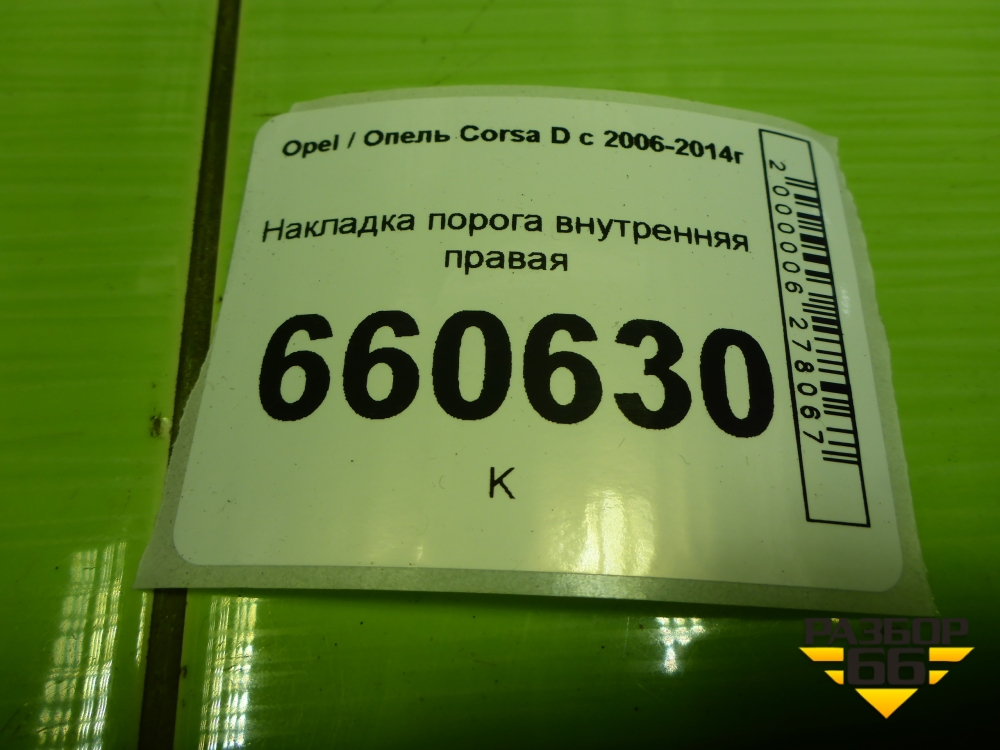 Накладка порога внутренняя правая (3-х дверный кузов) (13180586) для Opel Corsa D с 2006-2014г (Корса Д) в Тюмени
