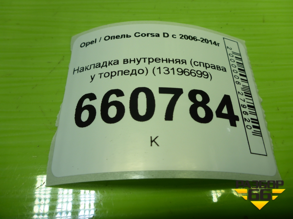 Накладка внутренняя (справа у торпедо) (13196699) для Opel Corsa D с 2006-2014г (Корса Д) в Тюмени