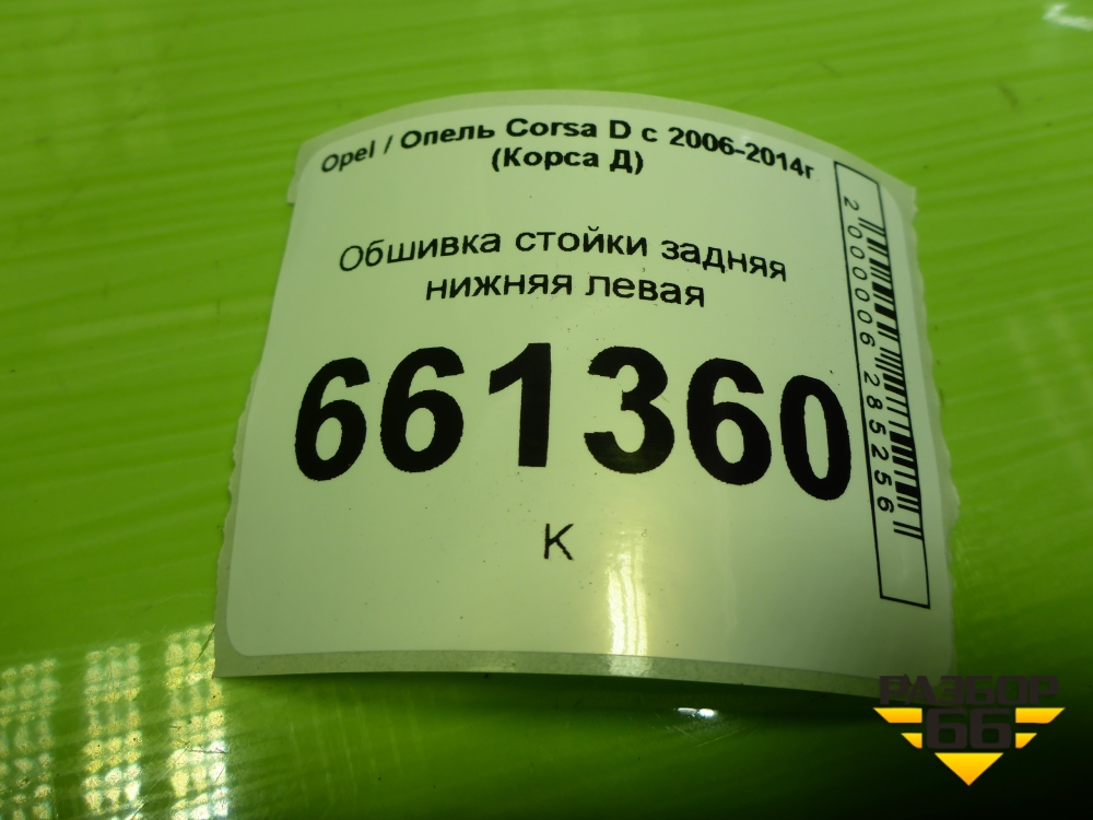 Обшивка стойки задняя нижняя левая (5ти дверный кузов) (13180610) для Opel Corsa D с 2006-2014г (Корса Д) в Тюмени