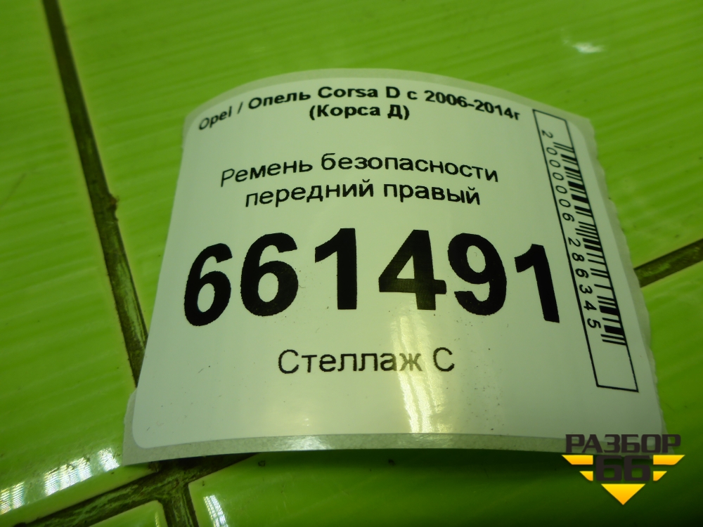 Ремень безопасности передний правый (607707800D) для Opel Corsa D с 2006-2014г (Корса Д) в Тюмени