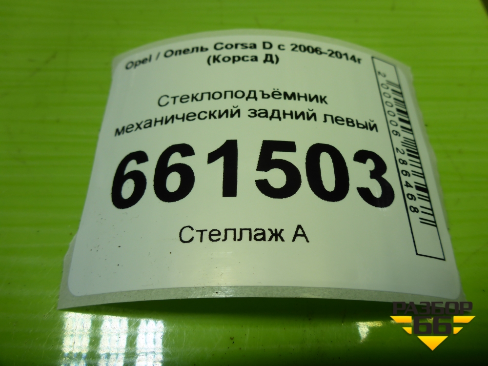 Стеклоподъёмник механический задний левый для Opel Corsa D с 2006-2014г (Корса Д) в Тюмени