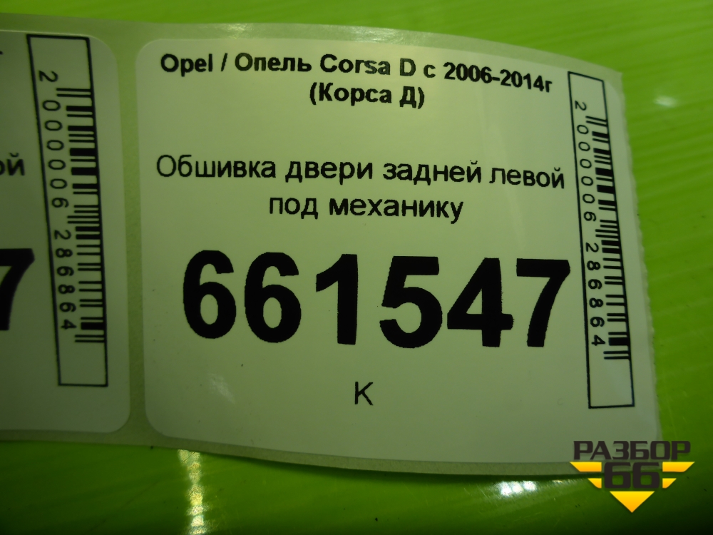 Обшивка двери задней левой под механику (13233644) для Opel Corsa D с 2006-2014г (Корса Д) в Тюмени