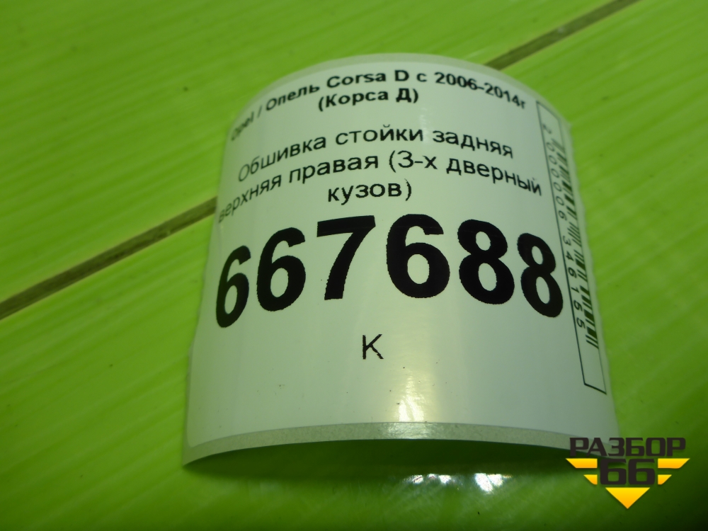Обшивка стойки задняя верхняя правая (3-х дверный кузов) (13180581) для Opel Corsa D с 2006-2014г (Корса Д) в Тюмени