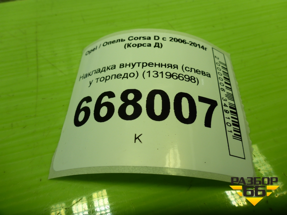 Накладка внутренняя (слева у торпедо) (13196698) для Opel Corsa D с 2006-2014г (Корса Д) в Тюмени