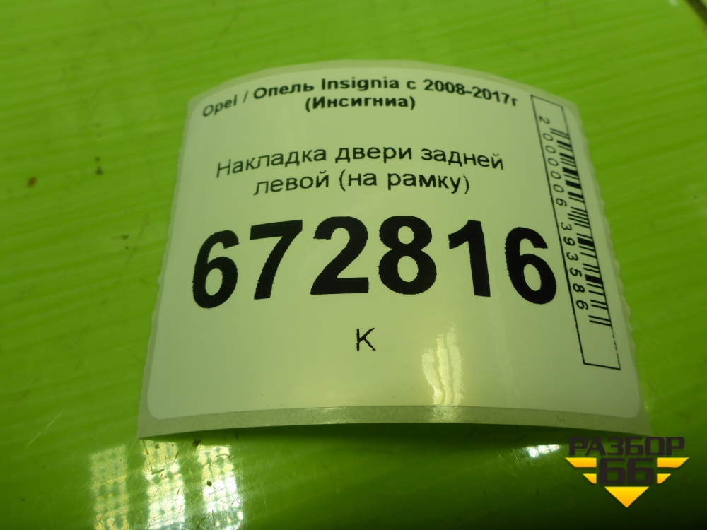Накладка двери задней левой (на рамку) (013256875) для Opel Insignia с 2008-2017г (Инсигниа) в Тюмени