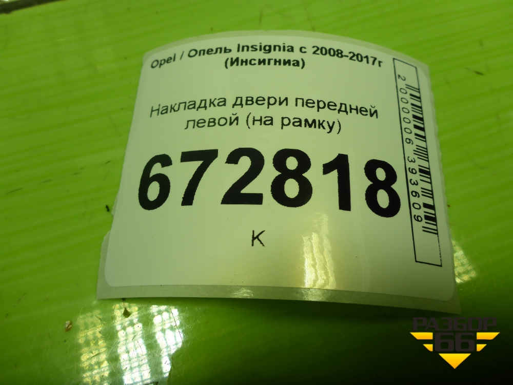 Накладка двери передней левой (на рамку) (013256885) для Opel Insignia с 2008-2017г (Инсигниа) в Тюмени