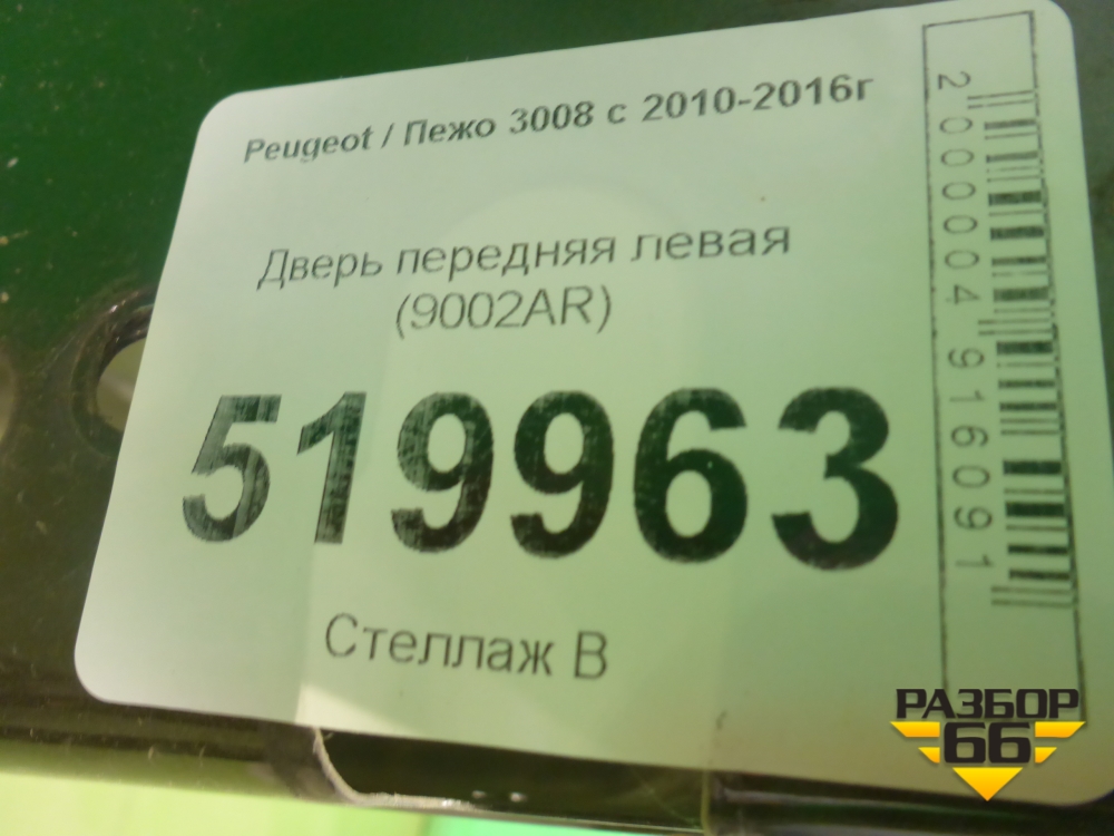 Дверь передняя левая (9002AR) для Peugeot 3008 с 2010-2016г в Тюмени