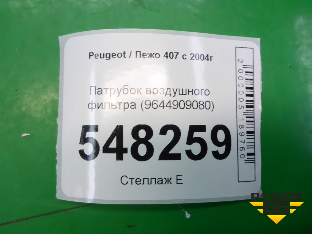 Патрубок воздушного фильтра (9644909080) для Peugeot 407 с 2004г в Тюмени
