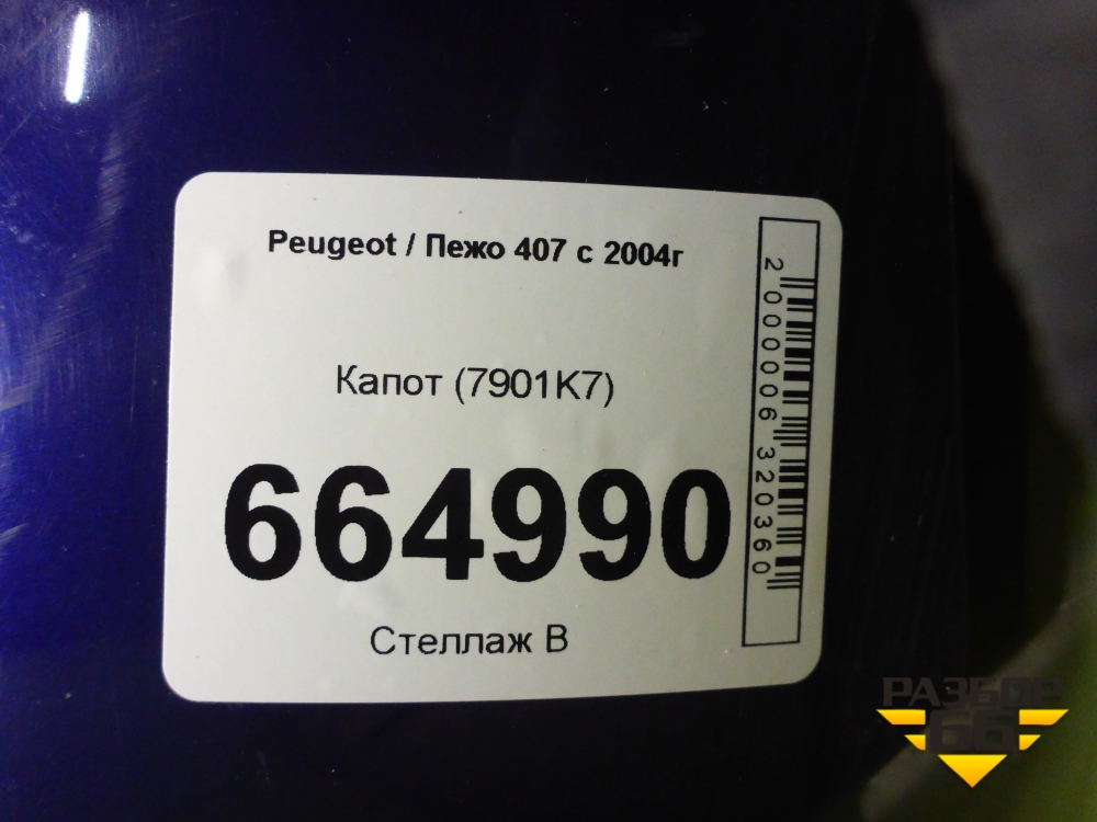 Капот (7901K7) для Peugeot 407 с 2004г в Тюмени
