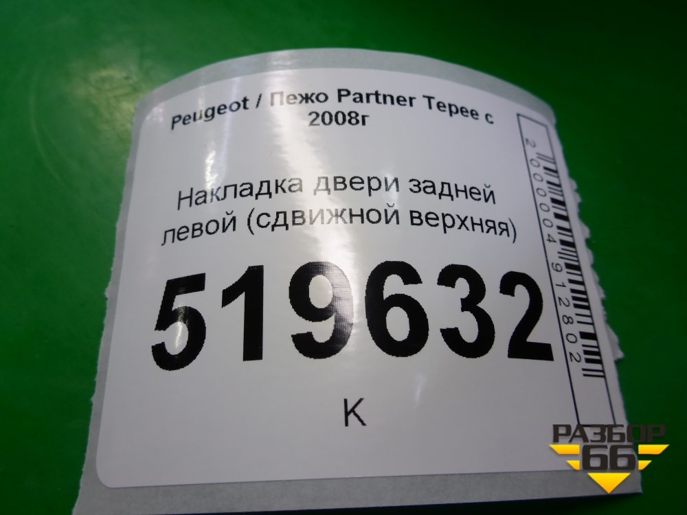 Накладка двери задней левой (сдвижной верхняя) для Peugeot Partner Tepee с 2008г (Партнер Типпи) в Тюмени