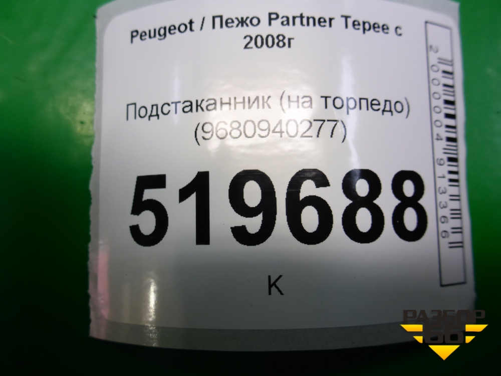Подстаканник (на торпедо) (9680940277) для Peugeot Partner Tepee с 2008г (Партнер Типпи) в Тюмени