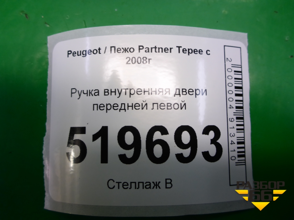 Ручка внутренняя двери передней левой (96555515) для Peugeot Partner Tepee с 2008г (Партнер Типпи) в Тюмени