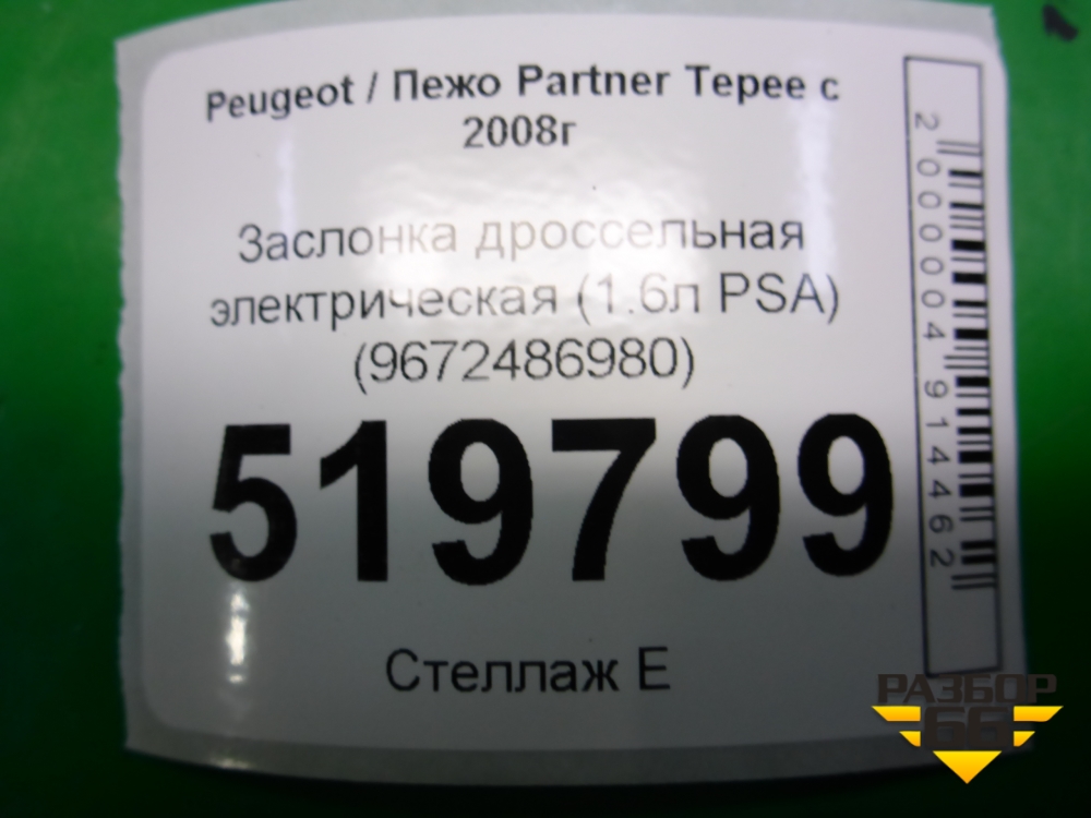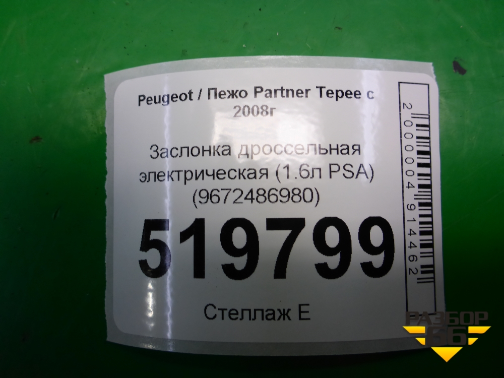Заслонка дроссельная электрическая (1.6л PSA) (9672486980) для Peugeot Partner Tepee с 2008г (Партнер Типпи) в Тюмени