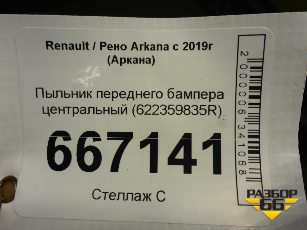 Пыльник переднего бампера центральный (622359835R) для Renault Arkana с 2019г (Аркана) в Тюмени