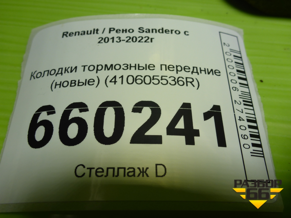 Колодки тормозные передние (новые) (410605536R) для Renault Sandero с 2013-2022г (Сандеро) в Тюмени