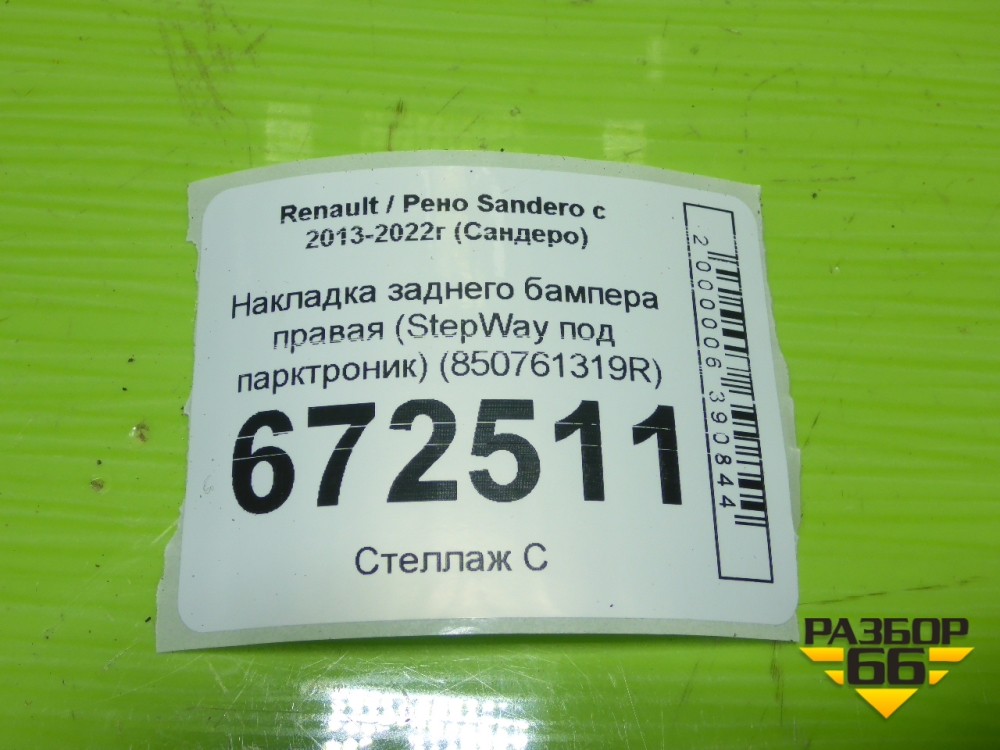 Накладка заднего бампера правая (StepWay под парктроник) (850761319R) для Renault Sandero с 2013-2022г (Сандеро) в Тюмени