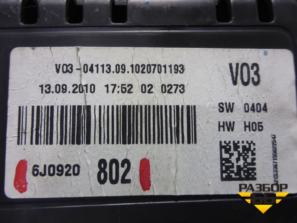 Щиток приборов МКПП (6J0920802) для Seat Ibiza с 2008-2017г (Ибица) в Тюмени