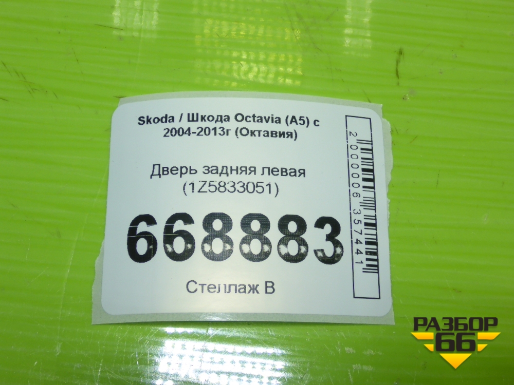 Дверь задняя левая (1Z5833051) для Skoda Octavia (А5) с 2004-2013г (Октавия) в Тюмени