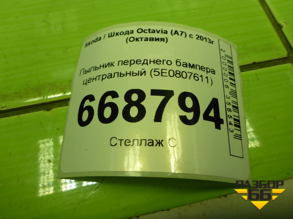 Пыльник переднего бампера центральный (5E0807611) для Skoda Octavia (A7) с 2013г (Октавия) в Тюмени