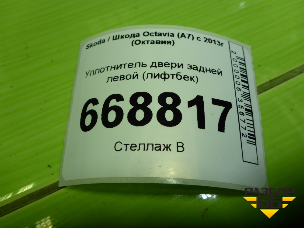 Уплотнитель двери задней левой (лифтбек) (5E5867367F) для Skoda Octavia (A7) с 2013г (Октавия) в Тюмени