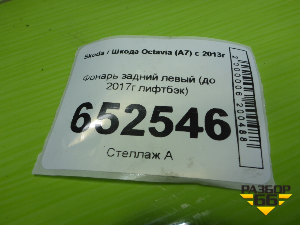 Фонарь задний левый (до 2017г лифтбэк) для Skoda Octavia (A7) с 2013г (Октавия) в Тюмени