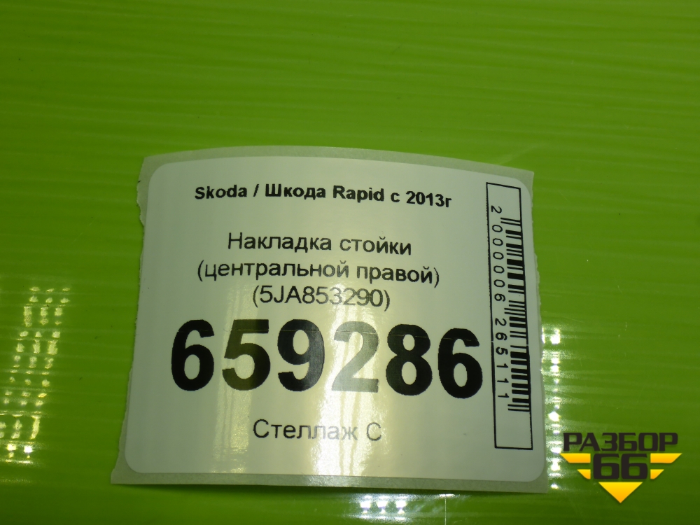 Накладка стойки (центральной правой) (5JA853290) для Skoda Rapid с 2013г (Рапид) в Тюмени