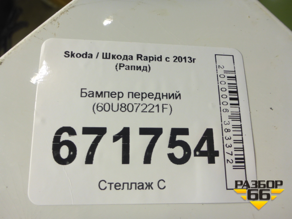 Бампер передний (60U807221F) для Skoda Rapid с 2013г (Рапид) в Тюмени